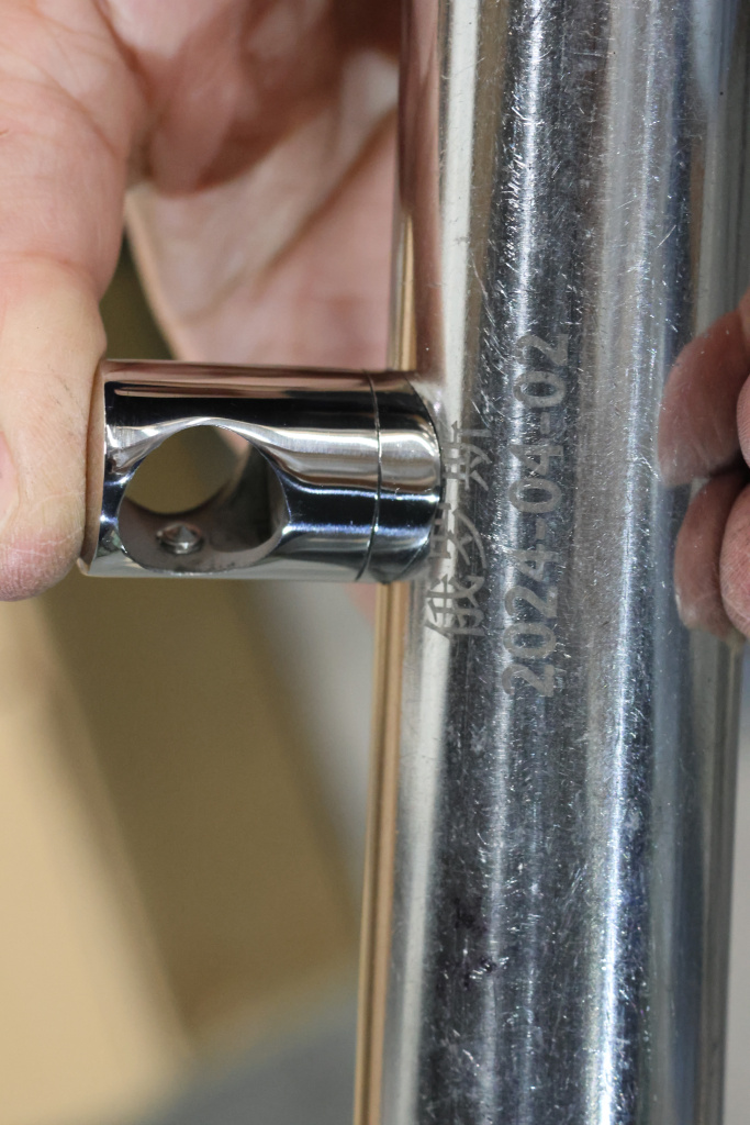 Ригеледержатель монтируется к трубе стойки на сварку с наружной стороны, либо на вытяжную заклепку М6. Для этого внутри ригеледержателя сделана специальная полость. Сам ригель (тетива) фиксируется шестигранником.