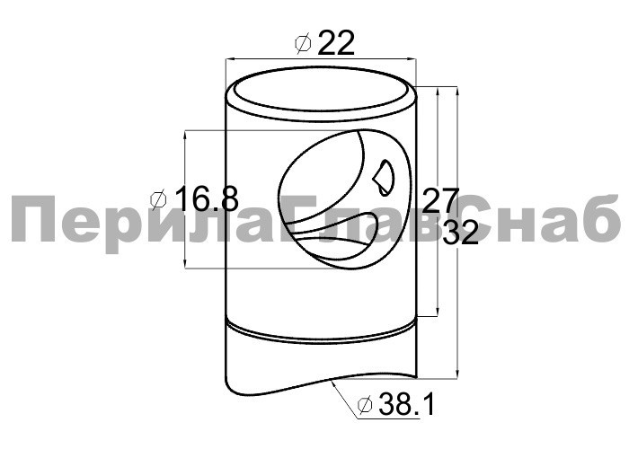 Предназначен для крепления нержавеющего ригеля (тетивы, струны) диаметром 16 мм к стойке ограждения Ø38.1 мм.