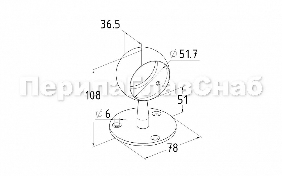 Держатель поручня выносной, с обхватом для трубы диаметром 50.8 мм, полированный. Марка стали - AISI 316