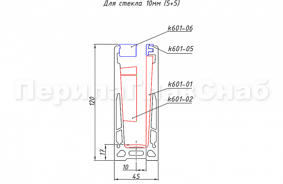 k601 — профиль для ограждений на несущем стекле (для стеклянных ограждений). Алюминиевый профиль чаще всего используется при строительстве таких объектов, как торговые дома, бизнес-центры, отели, спортивные сооружения. Максимально допустимая высота ограждения может доходить до 1200 мм, боковая нагрузка – до 430 кг. В данной модификации профиля предусмотрены крепежные отверстия.Наличие крепежных отверстий гарантирует более удобную и быструю установку профиля на объекте.