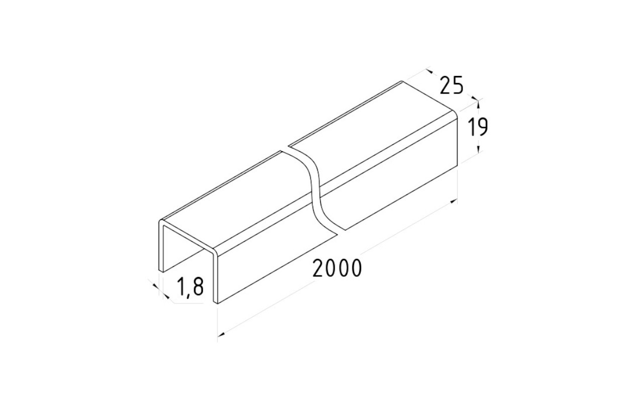 Профиль П-образный, L=2500 мм, t=1 мм, для стекла 8 мм, шлиф. (AISI 304) t115 SSS
