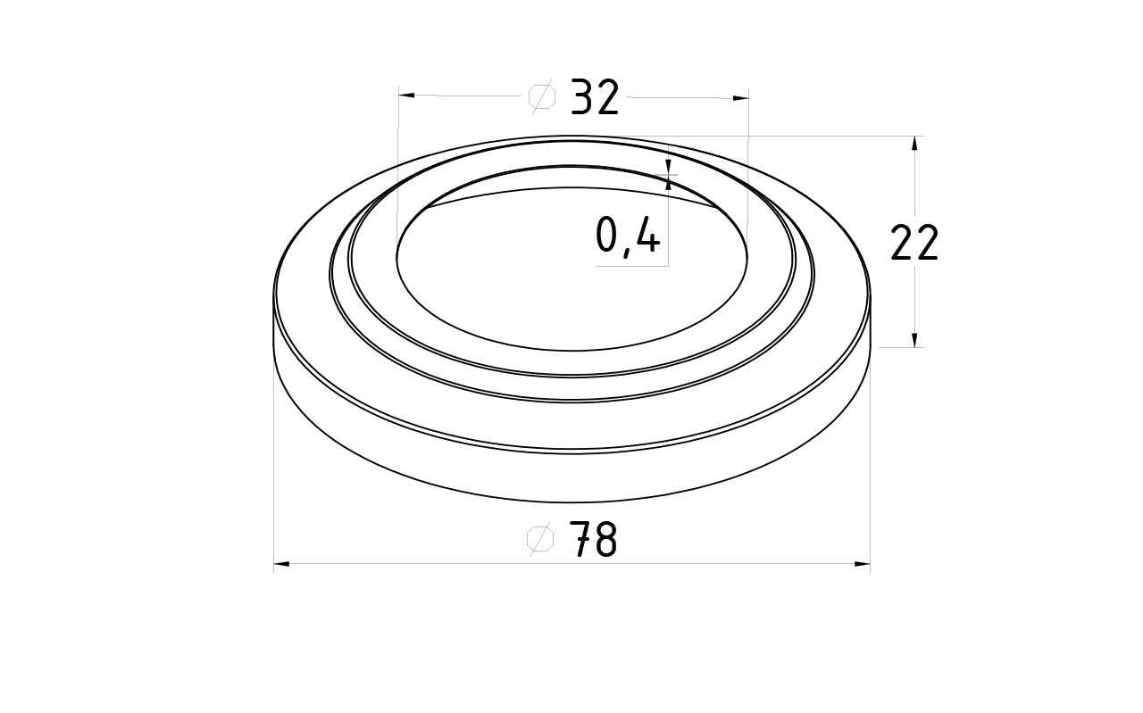 Низ стойки Ø32 мм, S=0,4 мм, внешний Ø78 х12 мм, полированный 400#, марка стали -  AISI 201