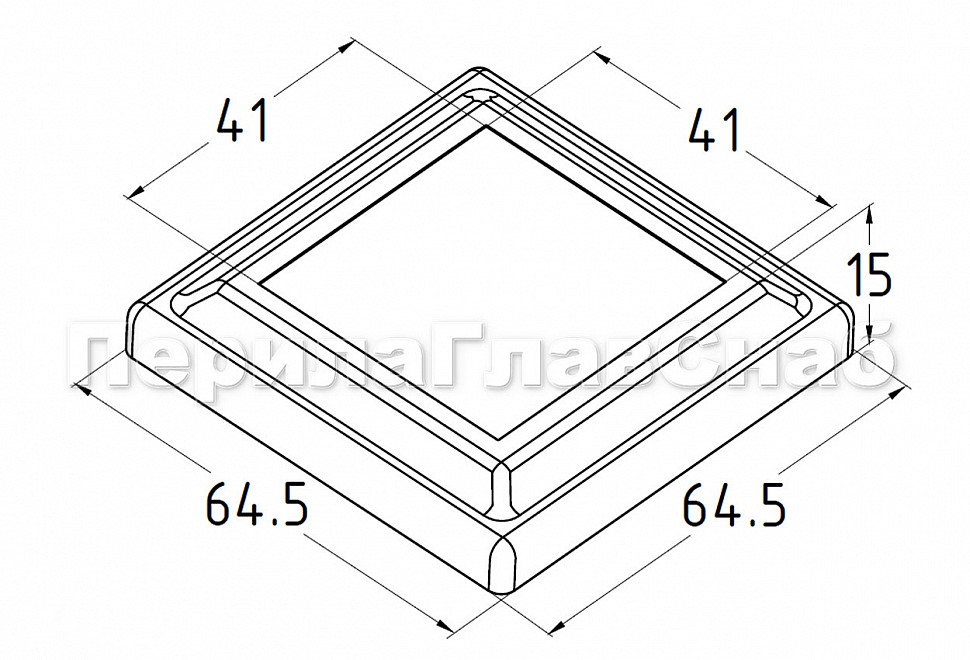 k396 Низ стойки фигурный под трубу 40х40 мм, 64.5х64.5, высота 15 мм, S=1 мм