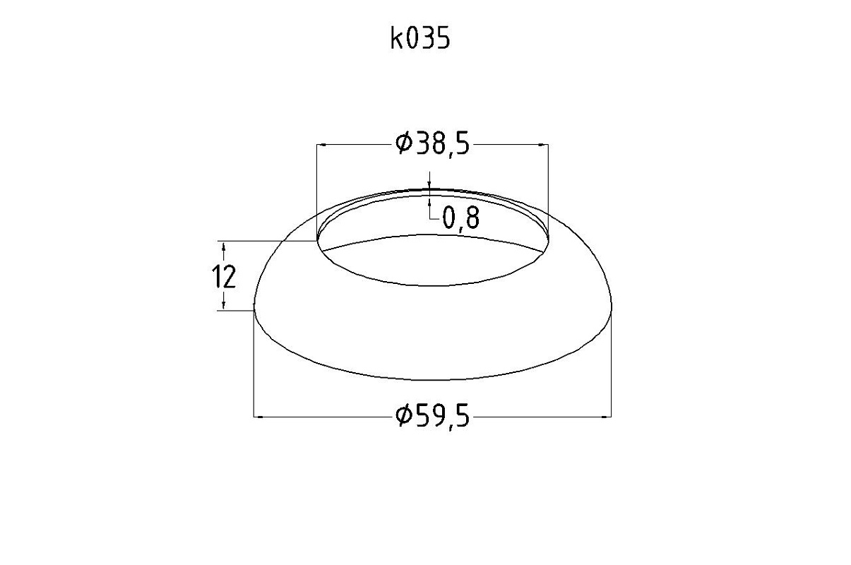 Декоративная крышка диаметром 60 мм под трубу Ø38.1 мм. Эта модель более прочная по сравнению со своим аналогом k015.