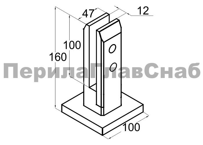 Стеклодержатель напольный 50х50х160 мм, литой, плоский, без сверления, нержавеющая сталь AISI 304, полированная k275-3 купить в Перми
