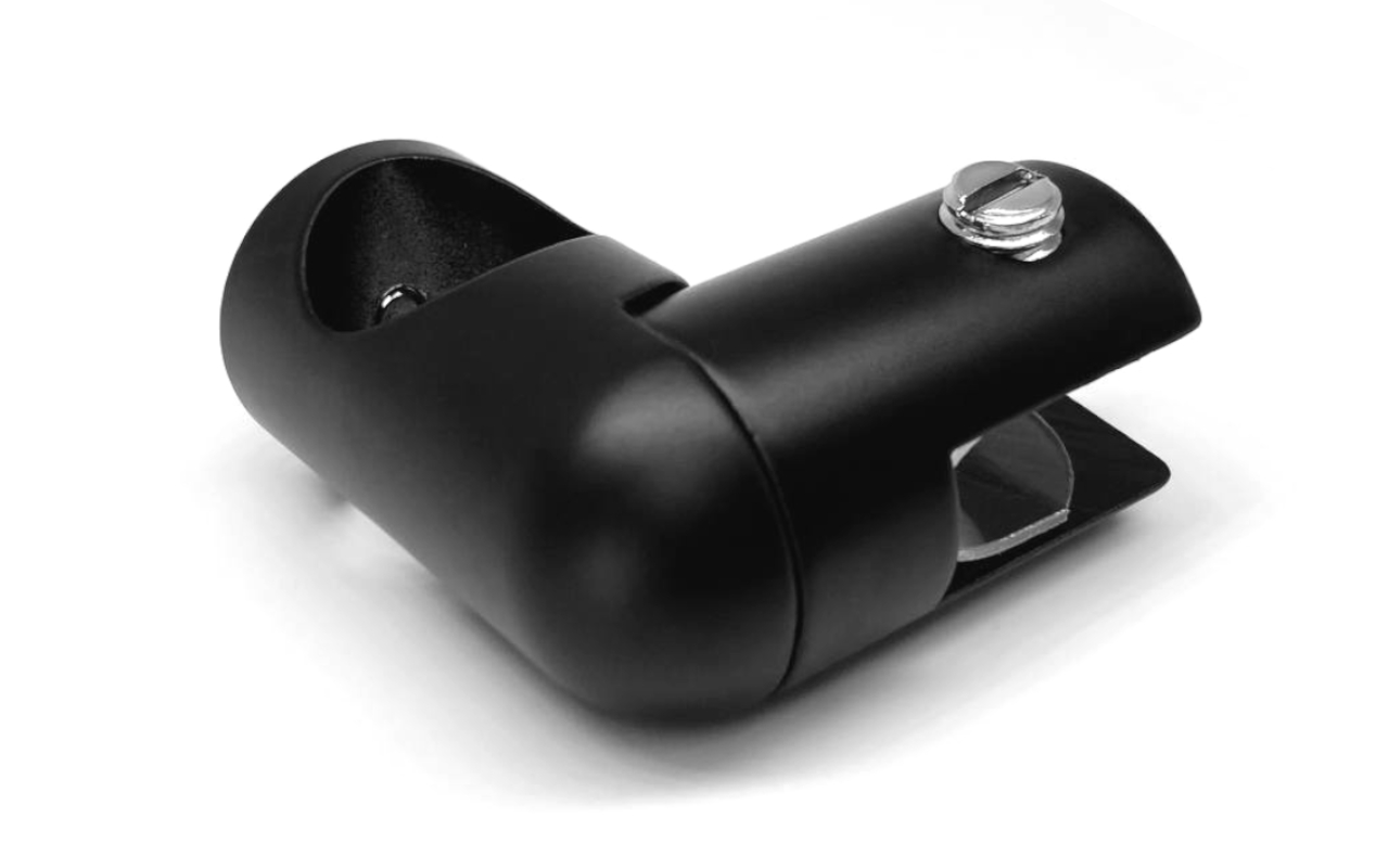 Коннектор предназначен для крепления круглой трубы 19 мм к стеклу в горизонтальной ориентации параллельно стеклу, при монтаже штанг верхней обвязки душевых кабин.