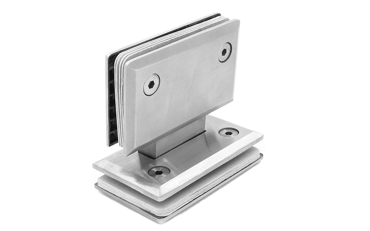 Петля из нержавеющей стали со шлифованной поверхностью из нержавеющей стали предназначена для стыковки между собой конструкционных элементов из стекла, толщина которых находится в диапазоне от 8 до 10 мм. Максимальный вес двери на 2 петли составляет 45 кг. В конструкции заложена система скрытого крепежа. Имеет функцию доводчика до закрытия от 25°. Максимальный угол разведения стыковочных элементов в плане составляет 180°