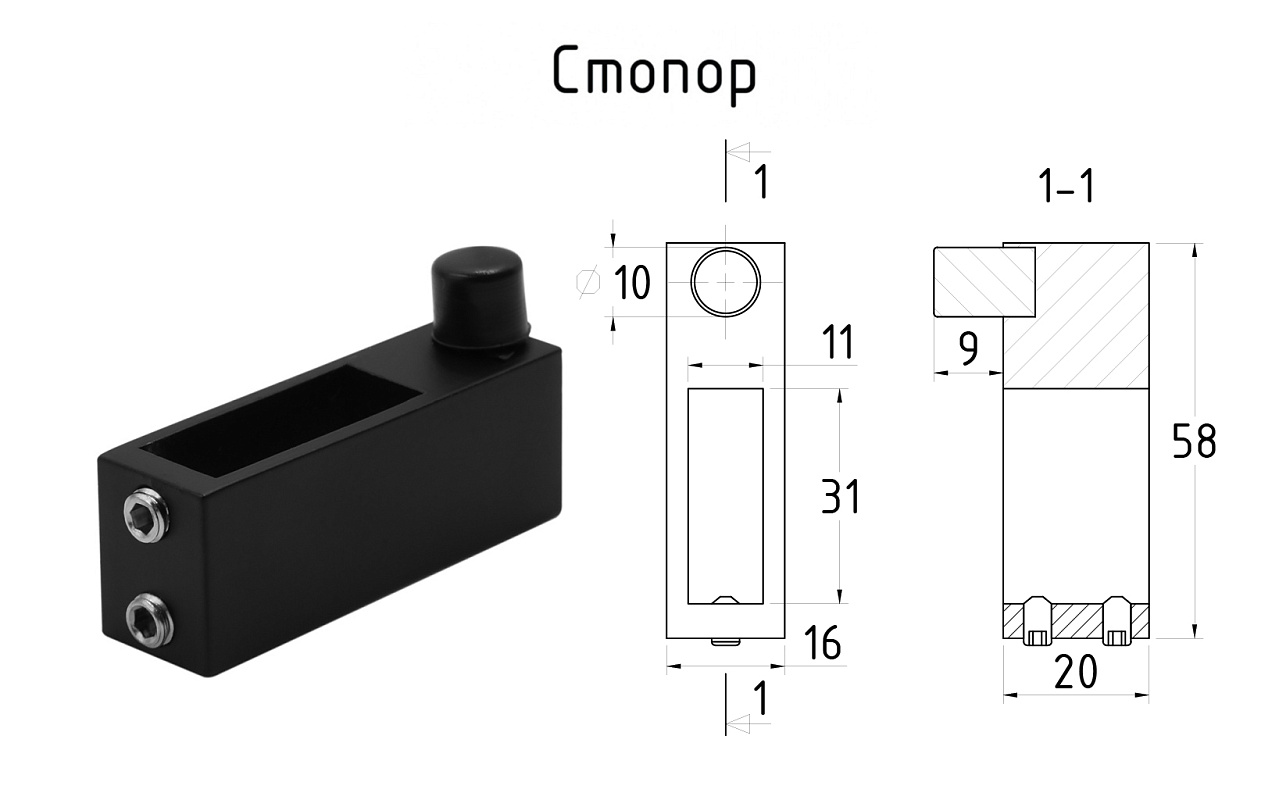 Коннектор регулируемый для трека 30х10 мм, нержавеющая сталь AISI 304, черная t465 BL купить в Перми