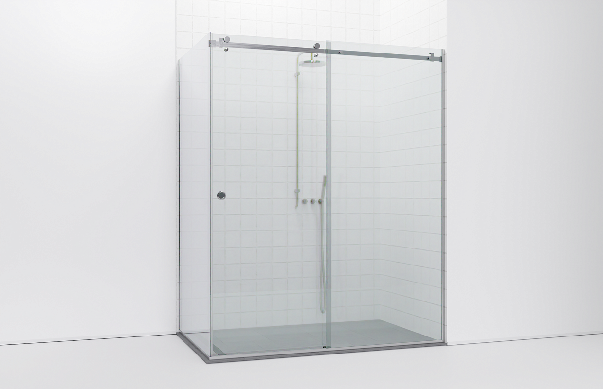 Комплект фурнитуры для угловой душевой перегородки с раздвижными дверями. Стекло устанавливается в опорный профиль, сверху фиксируется с помощью профильной штанги (трубы). На двери устанавливается раздвижная система. Герметичность конструкции обеспечена уплотнителями. Стекло в комплектацию не входит.