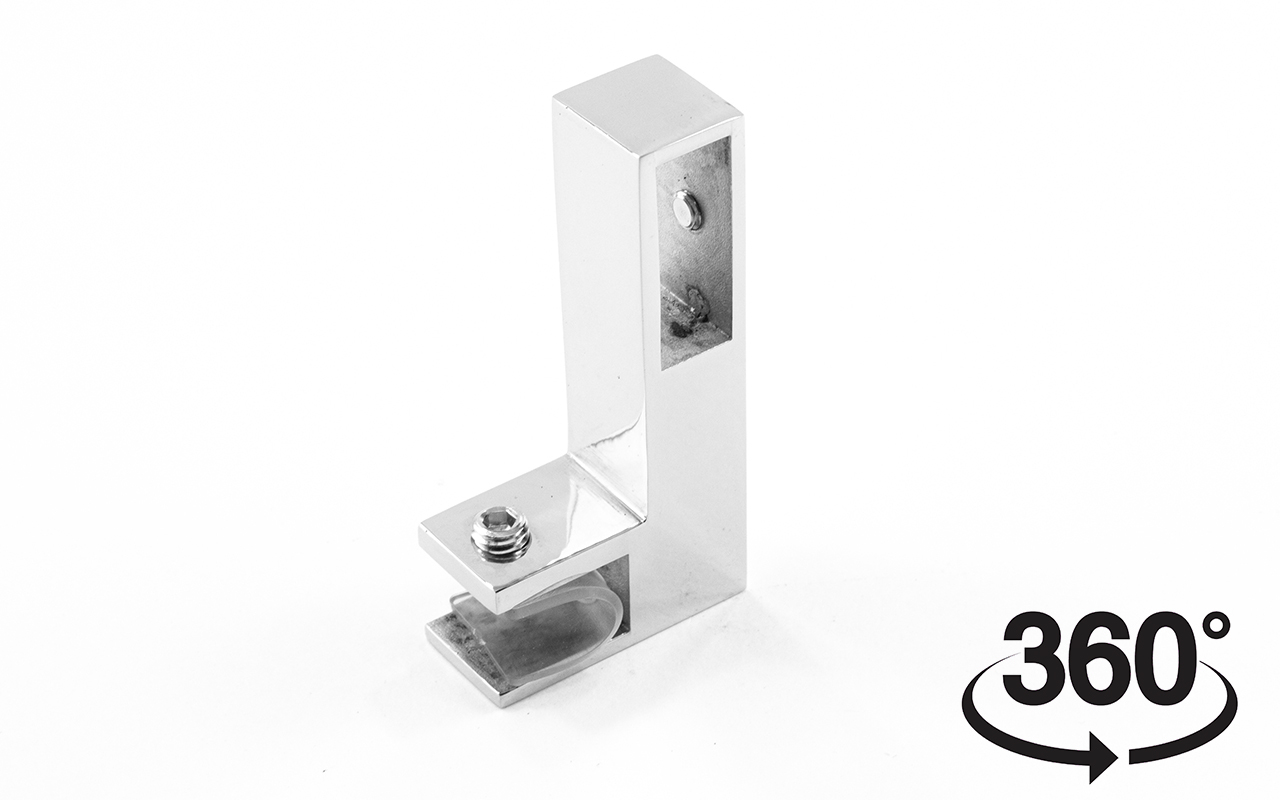 Коннектор предназначен для крепления профильной трубы 30х10 мм к стеклу в горизонтальной ориентации параллельно стеклу, при монтаже штанг верхней обвязки душевых кабин.