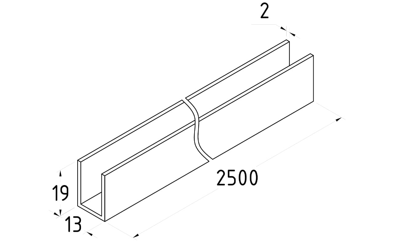 П-образный профиль 19x13, L=2500, алюминий, черный t756-2-2500 BL