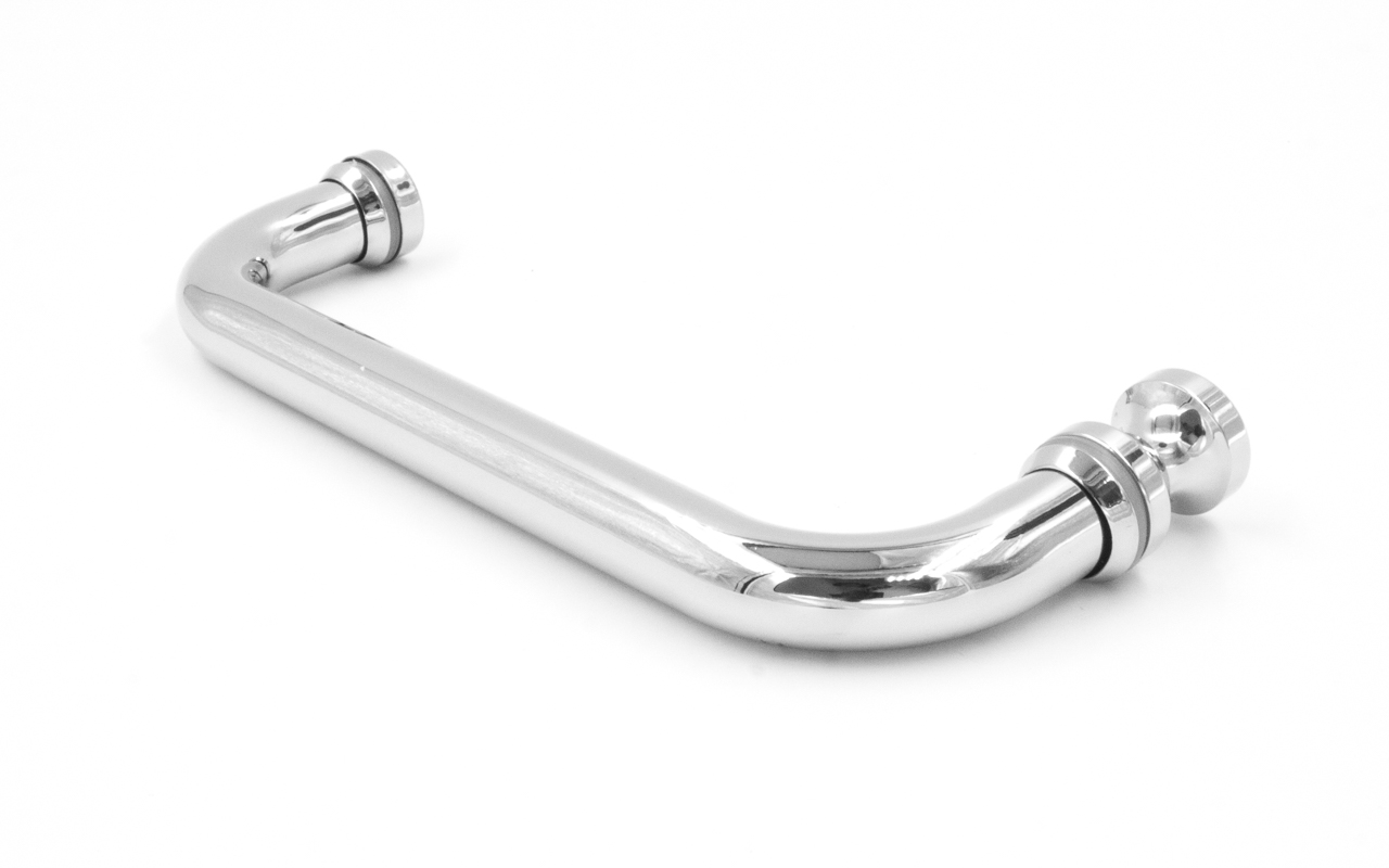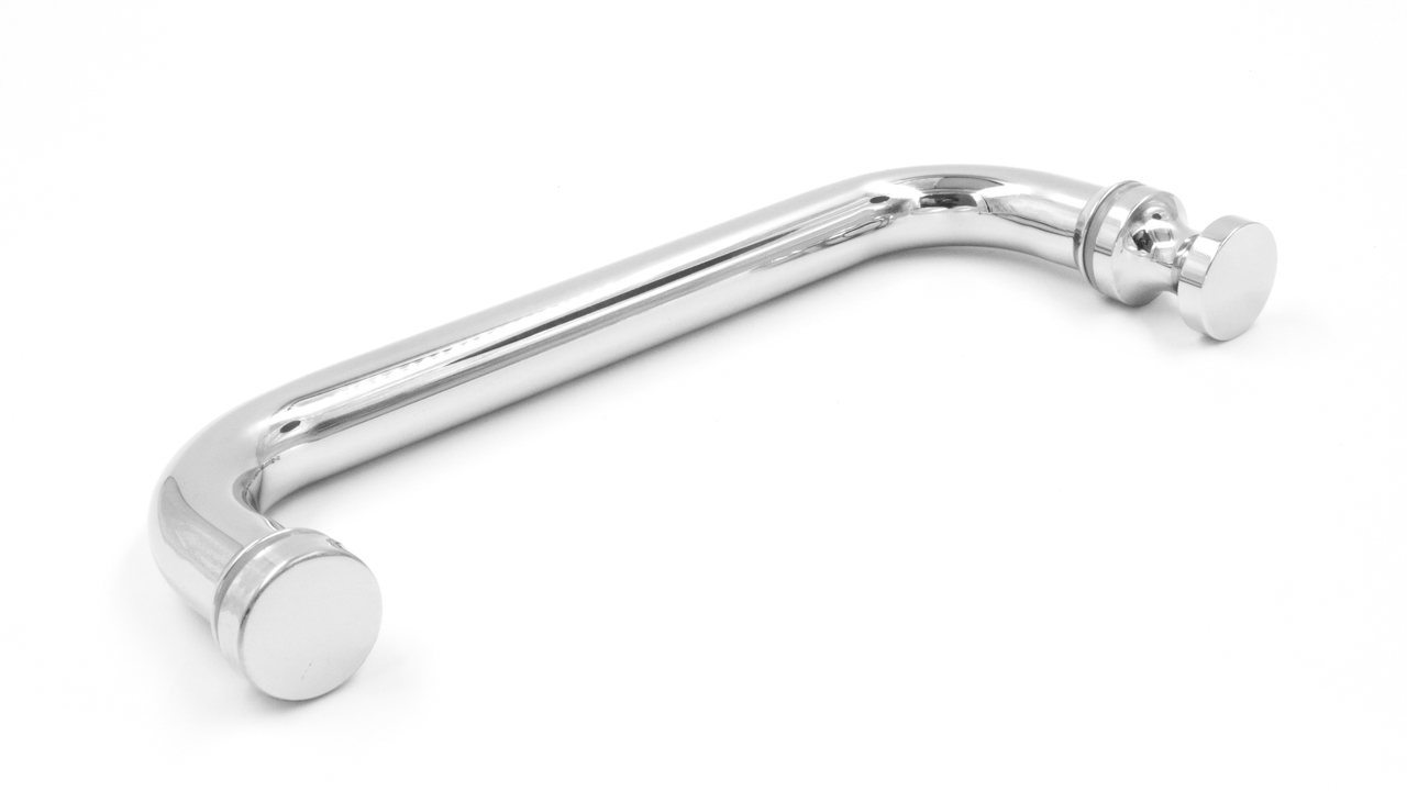 Дверная ручка с кнобом для стекла 8-10 мм, 19х201 мм, отверстие 12 мм, полированная.