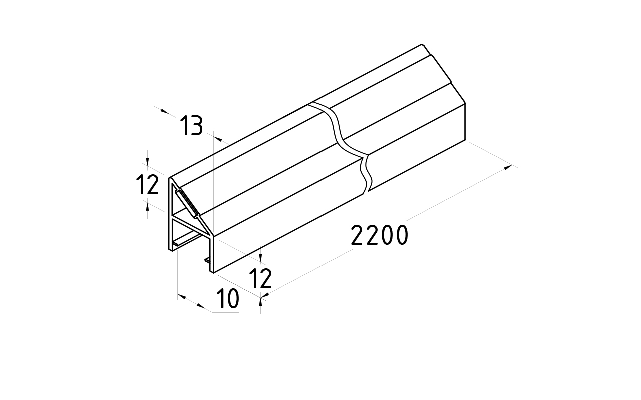 Комплект уплотнителей для стекла в душевую кабину (2 шт.), стекло-стекло 10 мм, с магнитом 135°, 2200 мм t228