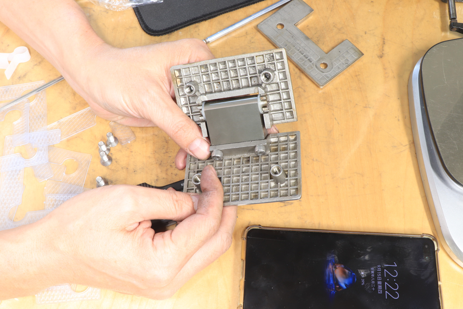 Крепление предусмотрено с двух сторон на 4 винта со шляпками заподлицо (по 2 винта на каждую сторону). Размер одной стороны петли составляет 90х55 мм.