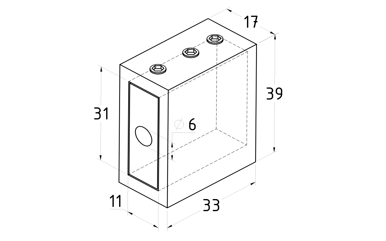 Задняя пластинка крепится к стене с помощью резьбового соединения ⌀6мм, далее трек с надетой второй частью коннектора надевается на пластину и фиксируется винтом с шестигранником.