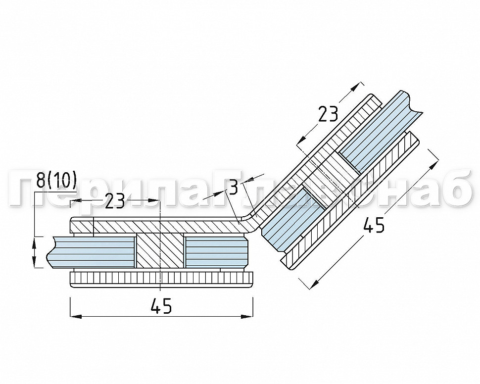 Коннектор для душевой кабины стекло-стекло 135°, 45х45 мм. Материал - латунь-хром, поверхность - полированная