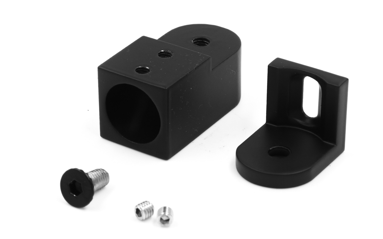 Откручиваем центральный винт. Пятку крепим к стене с помощью самореза и дюбеля, вторую часть надеваем на трубу и шестигранником фиксируем трубу. Закручиваем центральный винт и соединяем две половины держателя.