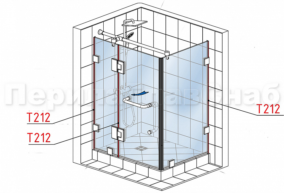 Комплект раздвижной системы для стеклянной душевой, нержавеющая сталь AISI 304, полированная t401 PSS купить в Перми
