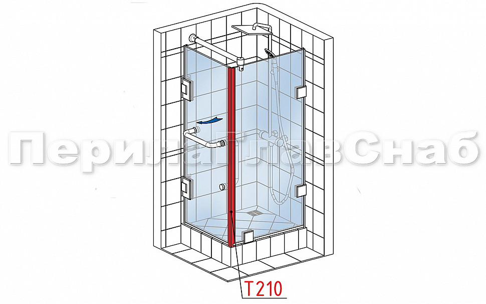 Комплект уплотнителей для стекла в душевую кабину (2 шт.), стекло-стекло 8 мм, с магнитом 90°/180°, 2200 мм t210