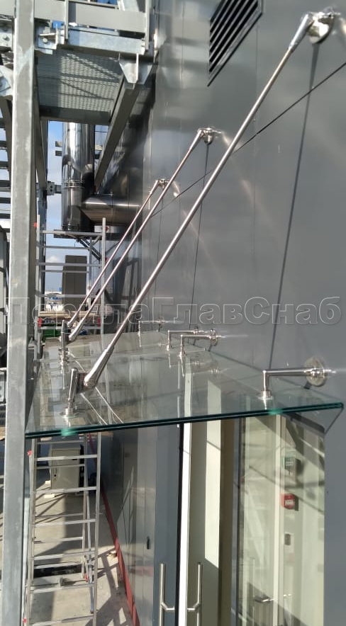 Вант используется для крепежа козырька при помощи наконечников k661-L и k661-R. Длину ванта можно посчитать по теореме Пифагора. Вы знаете размеры стекла от стены до края и растояние от стекла, до верхнего стенового крепежа k658. Так же ванты используются не только в бескаркасных стеклянных козырьках, но и на козырьках с металлическим каркасом, но большим выносом для усиления конструкции.