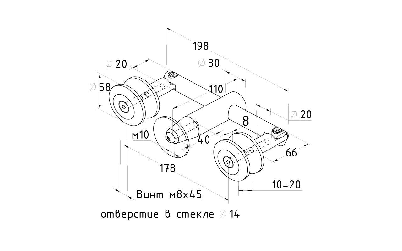 Рутель под стекло 10-26 мм, шпилька М14, регулируемый, разборный (AISI 304) k269-6 купить в Перми