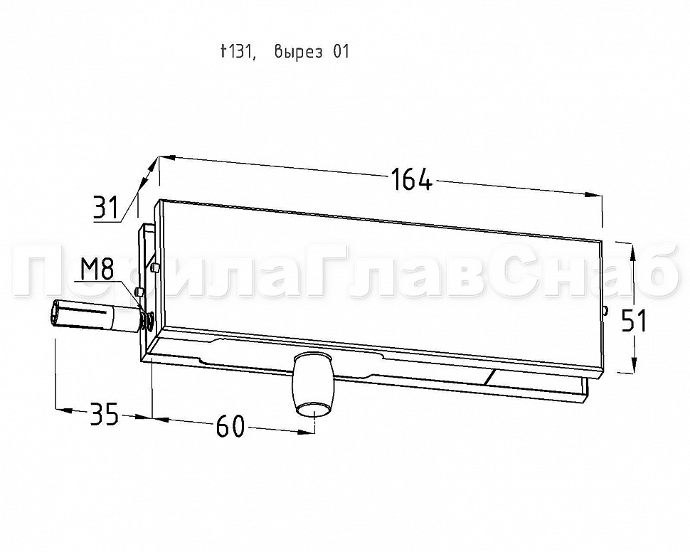 Фитинг на фрамугу с осью и анкером, шлифованный, вырез 01. Марка стали- AISI 304