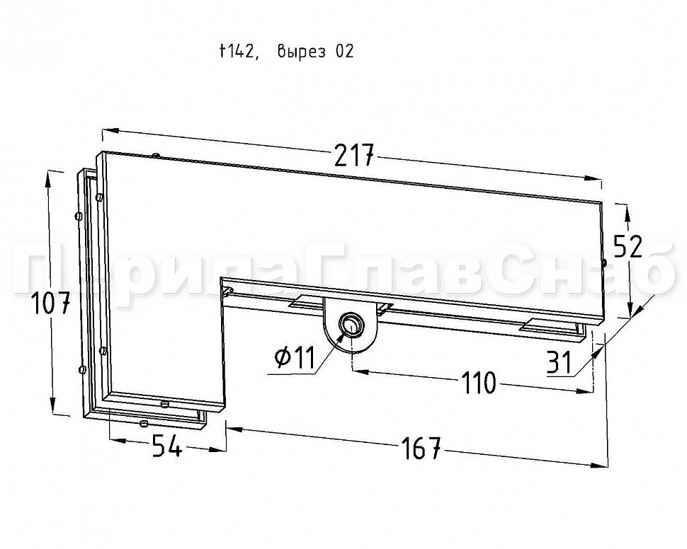 Является ответной частью на стекло для прямоугольного ригеля замка t152 PSS, при монтаже замка на верх двери. При необходимости маятникового открывания ограничитель открывания двери не устанавливается. Толщина стекла 10-12 мм. Для установки стекла 8 мм комплектуется дополнительной асбестовой прокладкой t111 2мм толщиной.