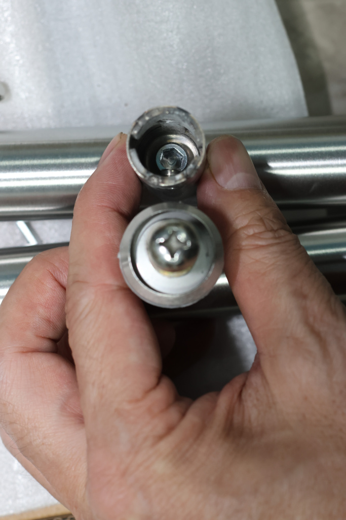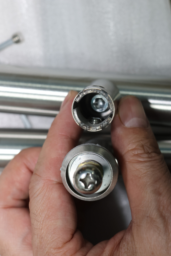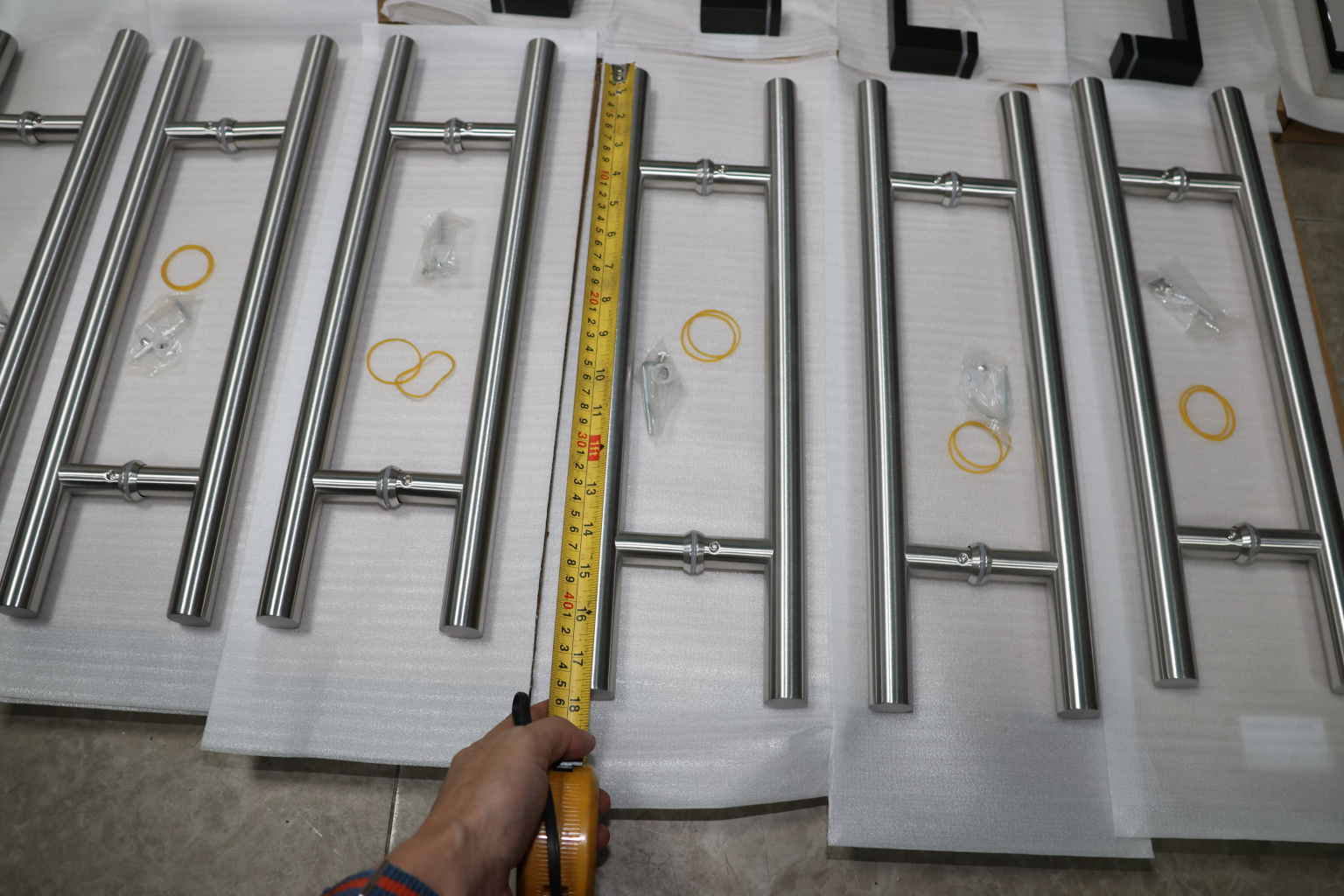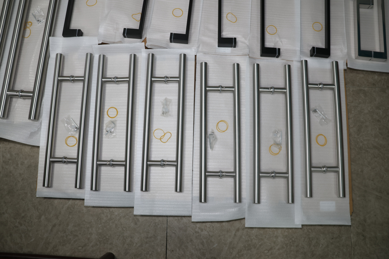 у основания ручки откручиваем с помощью шестигранника винты, делим ручку на две части, в заранее заготовленные отверстия вырезы в стекле 10-12 мм фиксируем первую часть ручки в отверстиях и с обратной стороны ответную часть затягиваем с помощью шестигранника