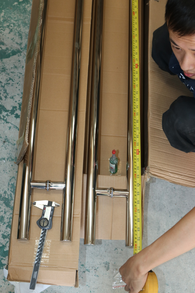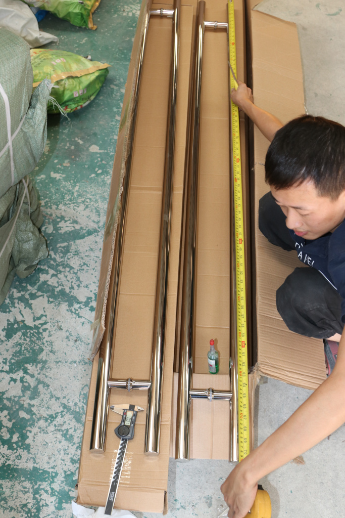 у основания ручки откручиваем с помощью шестигранника винты, делим ручку на две части, в заранее заготовленные отверстия вырезы в стекле 10-12 мм фиксируем первую часть ручки в отверстиях и с обратной стороны ответную часть затягиваем с помощью шестигранника.