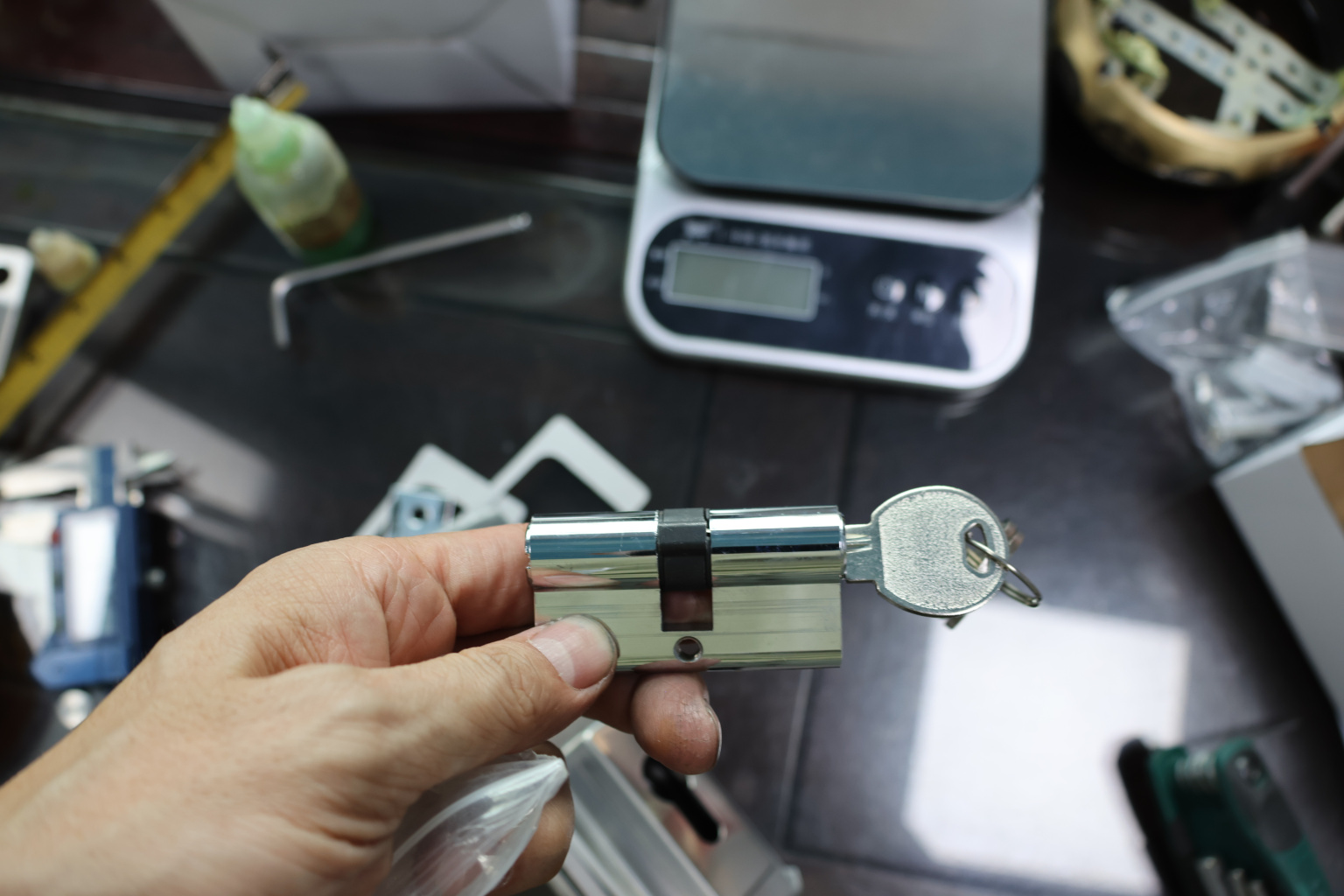 Сбоку нажимаем на крепления крышек и снимаем. Отвинчиваем винты, и фиксируем замок в подготовленный вырез в стекле. Далее закручиваем и фиксируем обратно крышки. Ответную часть крепим под замком с пробуренным отверстием под ригель.