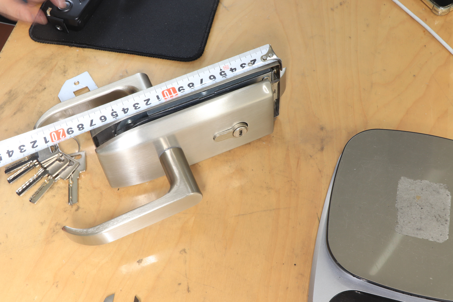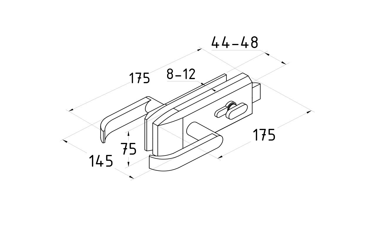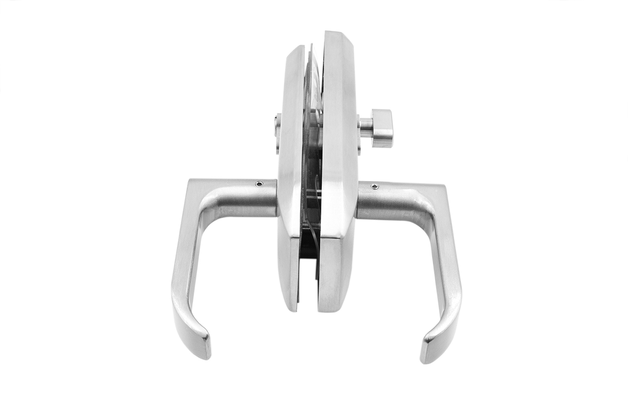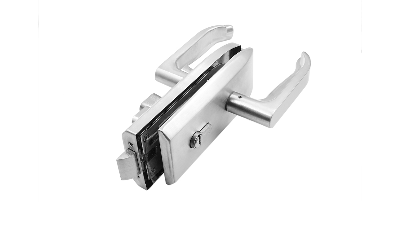 Замок с нажимной ручкой монтируется на стеклянную дверь, толщина стекла 8-12 мм.
