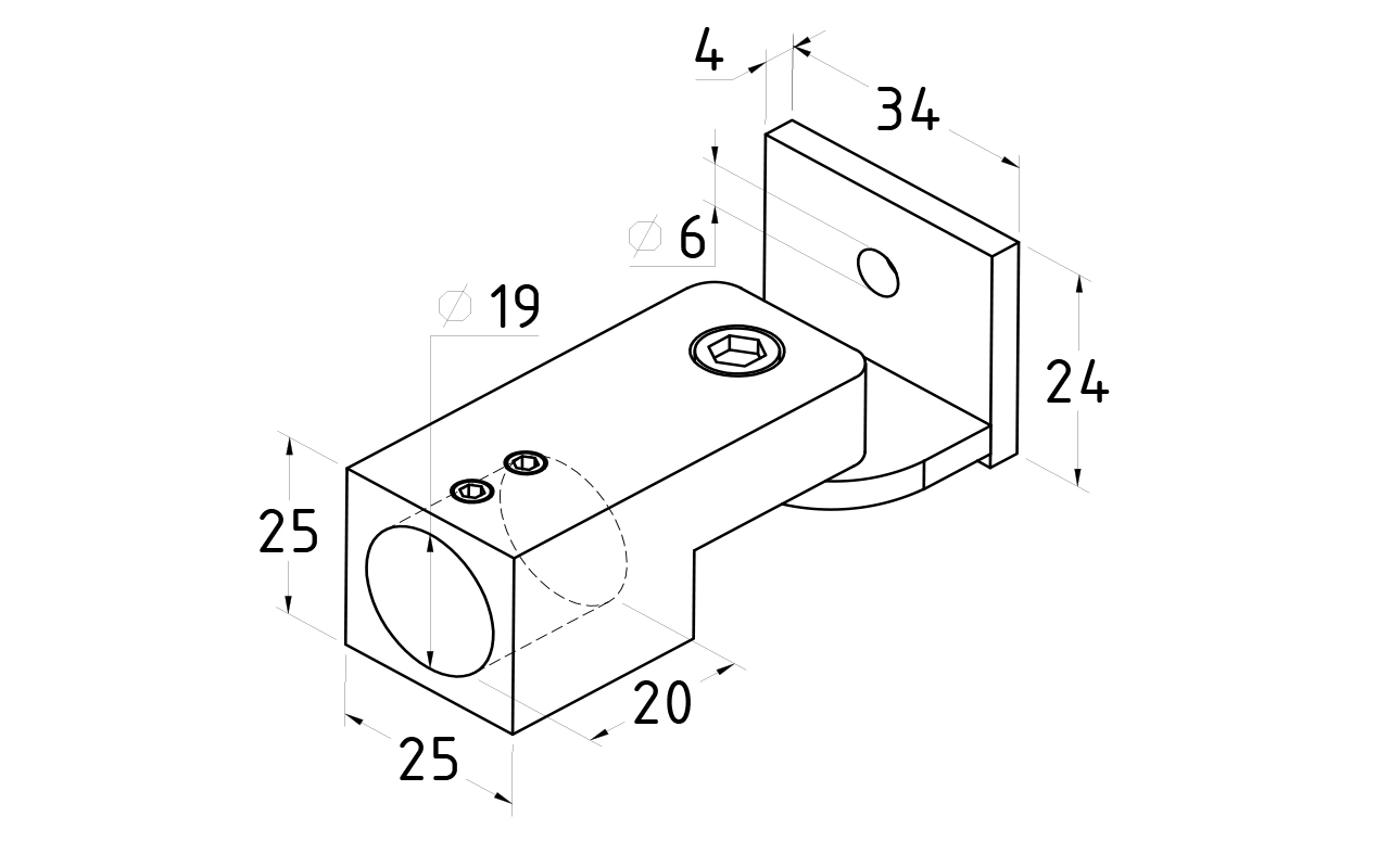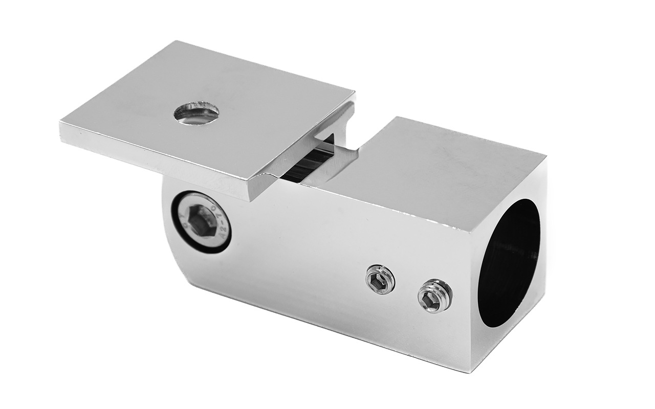Коннектор предназначен для крепления труб Ø19 мм к стене под произвольным углом при монтаже верхней обвязки душевых кабин.