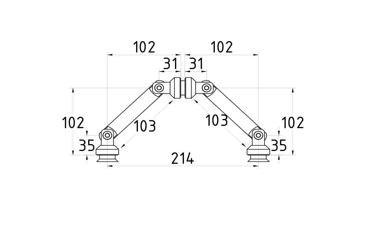 Крепление на три стекла, штанга 103 мм, под зенковку