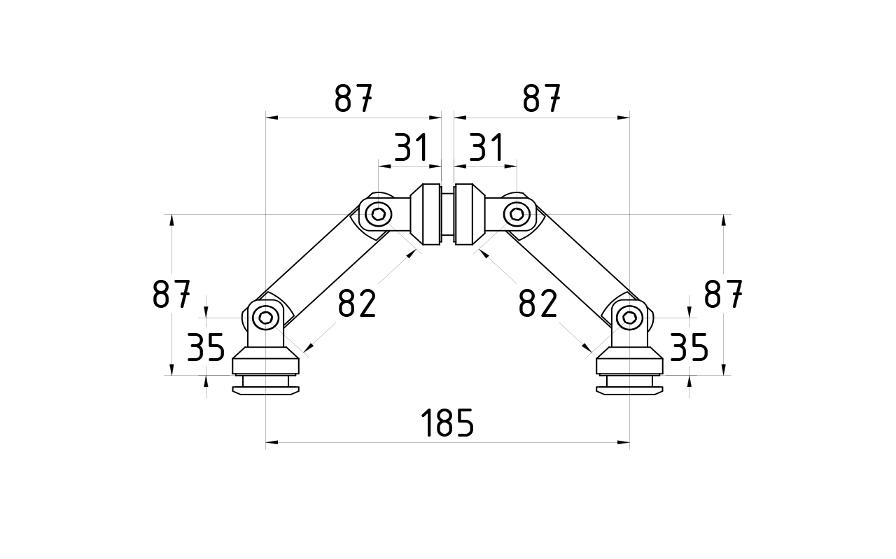 Крепление на три стекла, штанга 82 мм, без зенковки