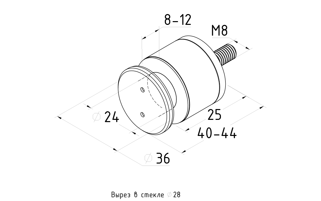 Точечный держатель стекла к стене Ø36x40, регулируемый, под стекло 8-12 мм k084-4