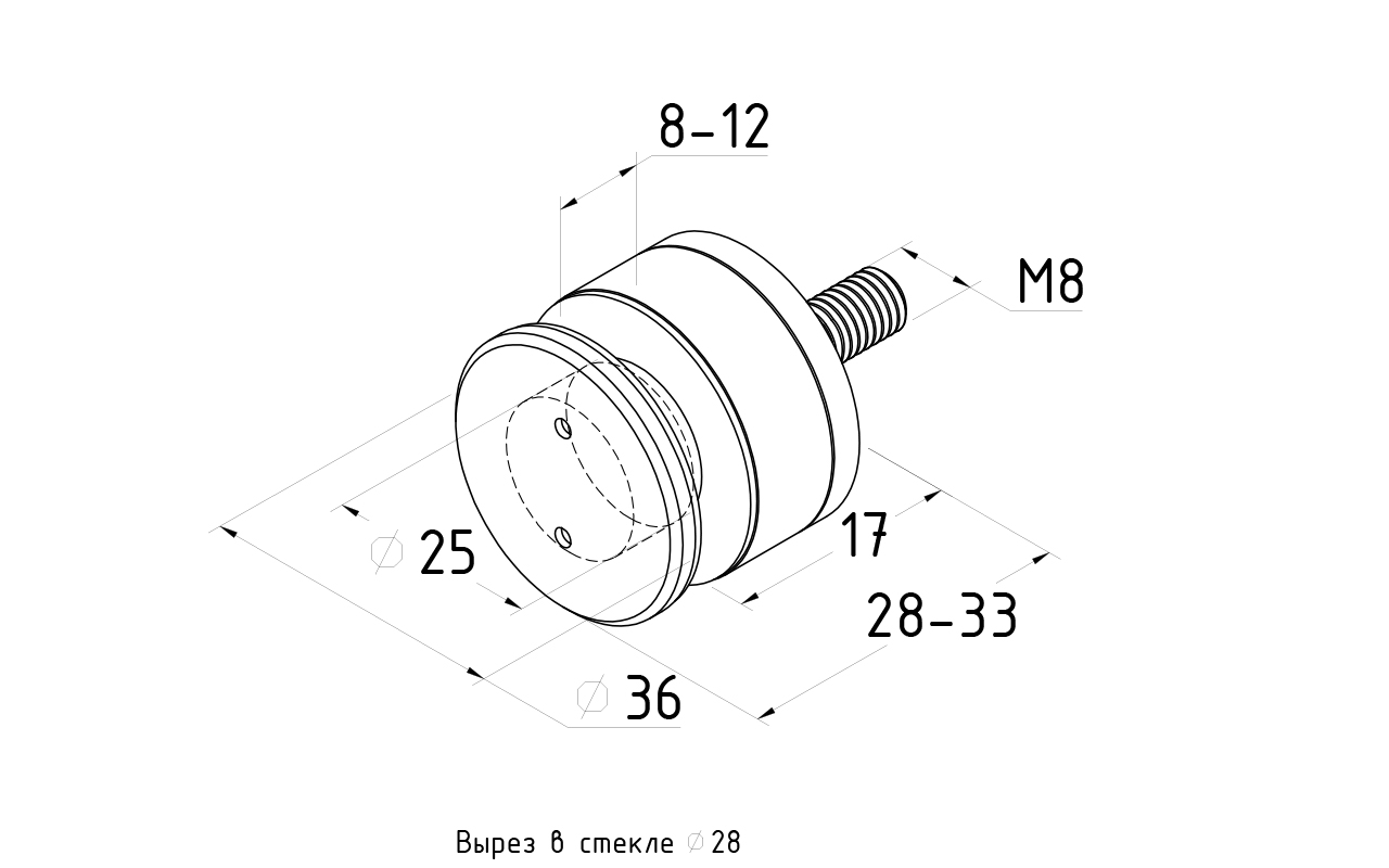 Ø36x28х40 мм, отверстие в стекле Ø28 мм