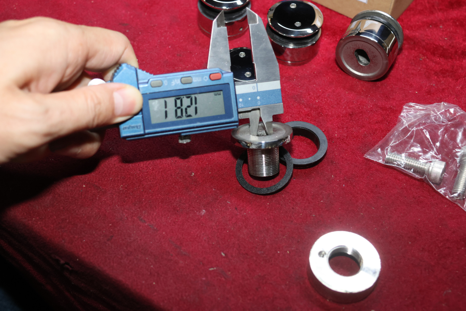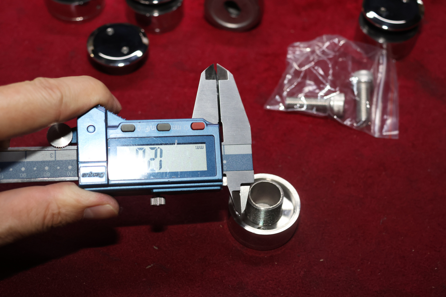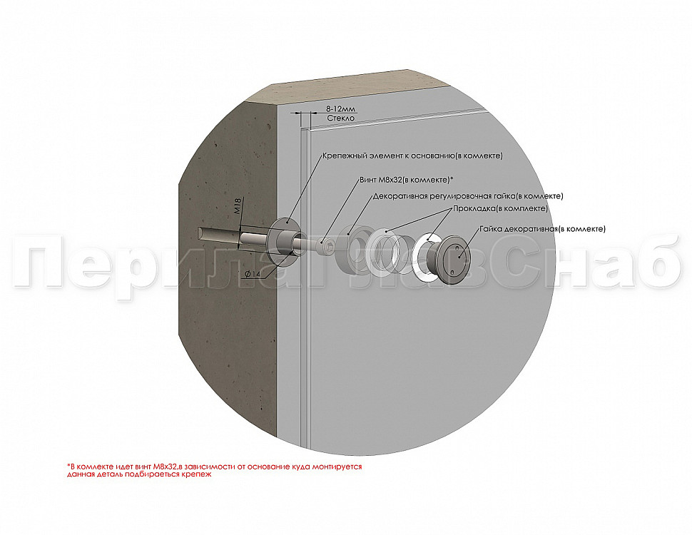 Корпус стеклодержателя приваривают или прикрепляют на саморез, либо штатный винт к стене. А в стекле делают отверстие Ø28 мм под шток стеклодержателя. Толщина стекла варьируется в диапазоне от 8 до 12 мм.