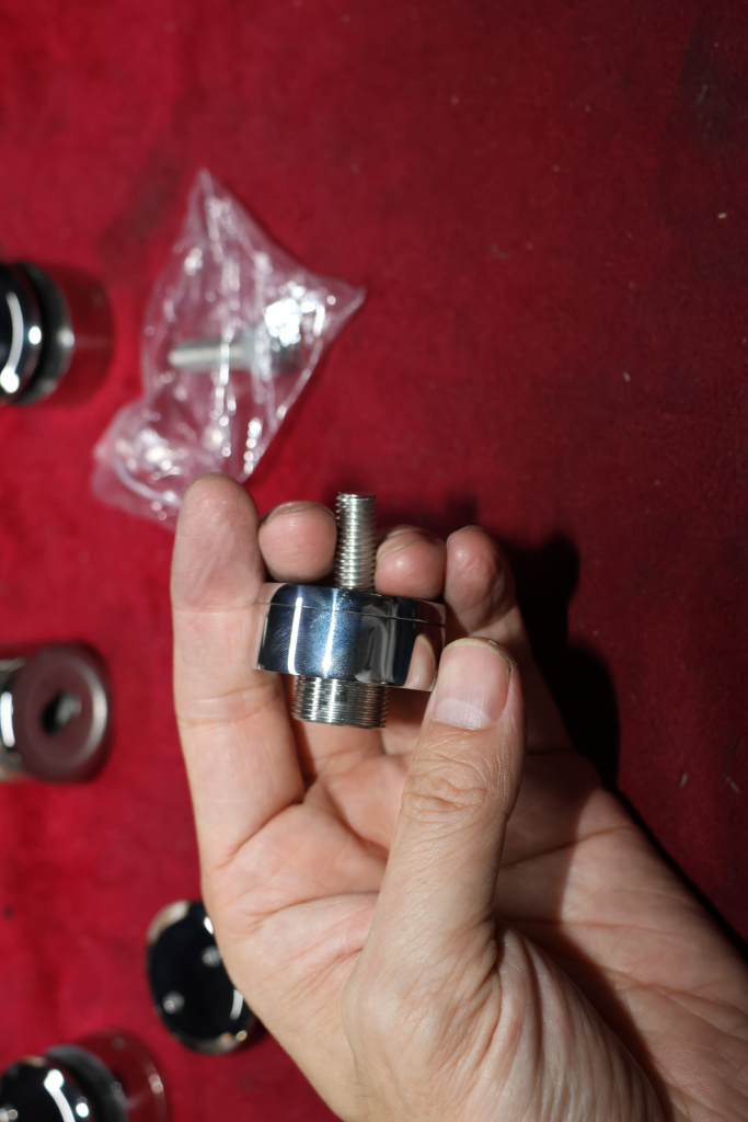 Стеклодержатель Ø50х10х18, шпилька М16х205 мм, для стекла 8-40 мм, AISI (201), с возможностью регулировки выноса до 65 мм, для торцевого крепления стекла, полированный, литой k277-3 купить в Перми