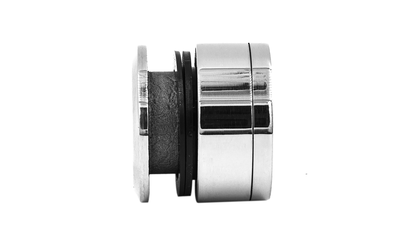 Стеклодержатель Ø50х10х18, шпилька М16х205 мм, для стекла 8-40 мм, AISI (201), с возможностью регулировки выноса до 65 мм, для торцевого крепления стекла, полированный, литой k277-3