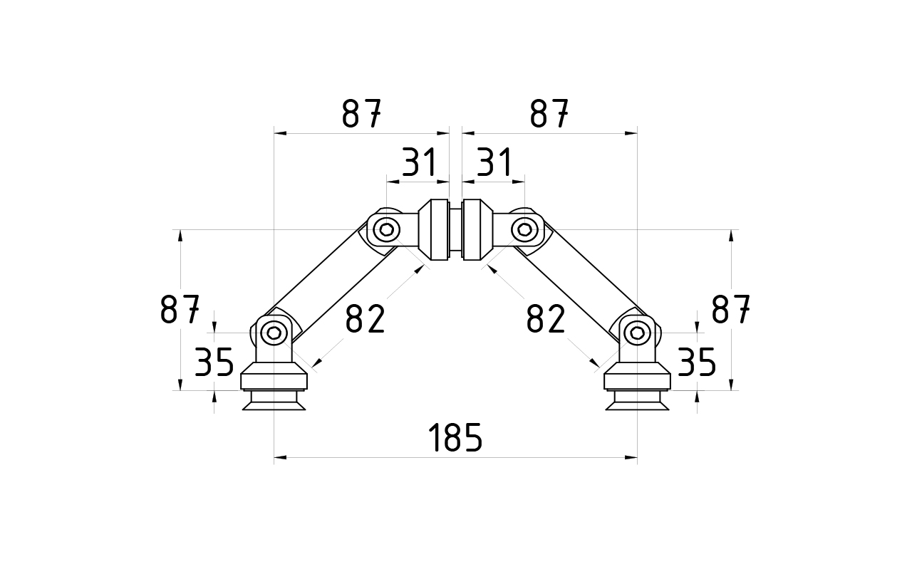 Крепление на три стекла, штанга 82 мм, под зенковку tt204-82 SSS