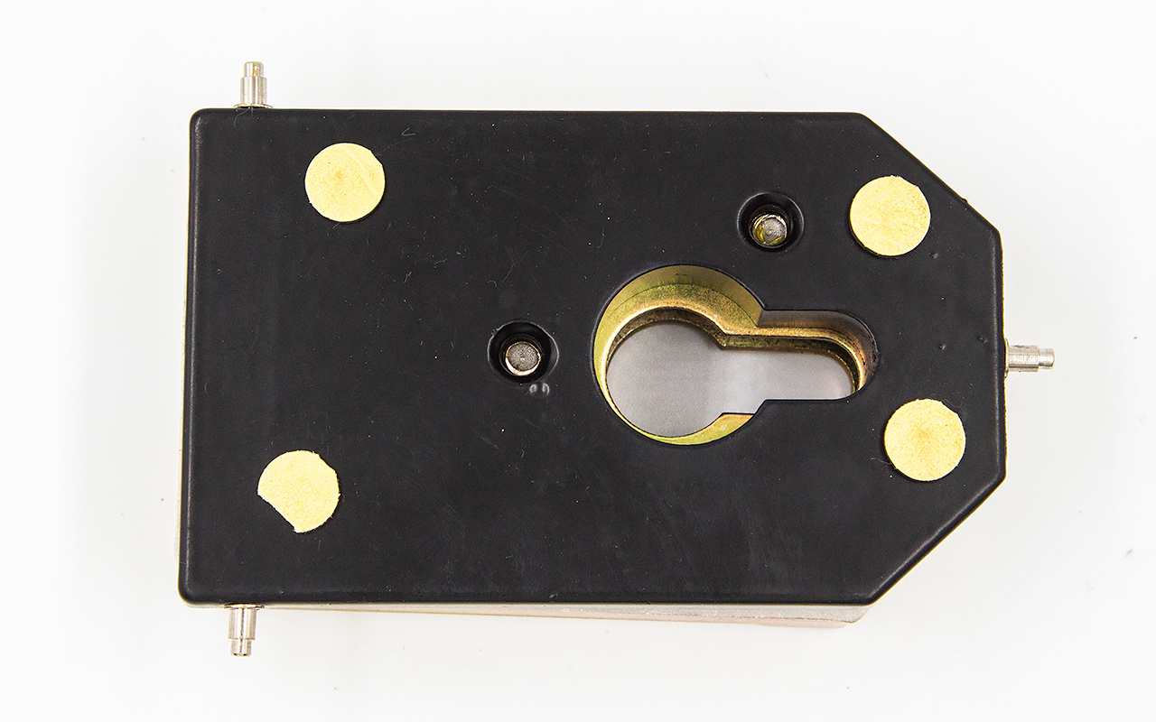 снимаем крышки замка, с помощью шестигранника раскручиваем замок на две части, фиксируем замок в заранее заготовленный вырез стекла. И обратно собираем- закручиваем замок и закрываем крышки