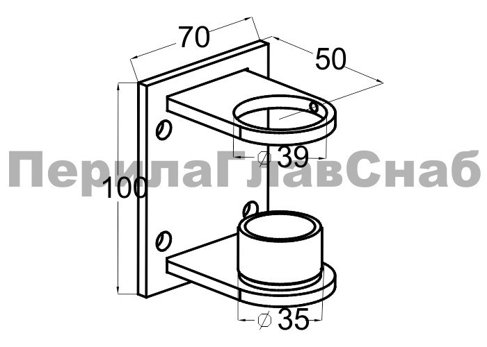 Цанга под трубу Ø42.4 мм, полированная #600, AISI 304, 3 отв. Ø7 мм, 3 отв. Ø9 мм, k334 купить в Перми