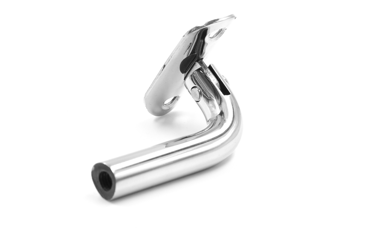 Держатель поручня выносной на стойку, с регулируемым ложементом под трубу Ø38.1 мм, резьба внутренняя М8, полированный, (AISI 304) k261