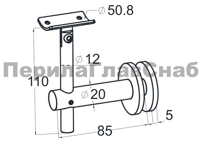 Стойка для пандуса: под 2 поручня Ø38,1-50,8 мм для инвалидов, 2 ригеледержателя, полированная, высота 900 мм, AISI 304 k750-6 купить в Перми