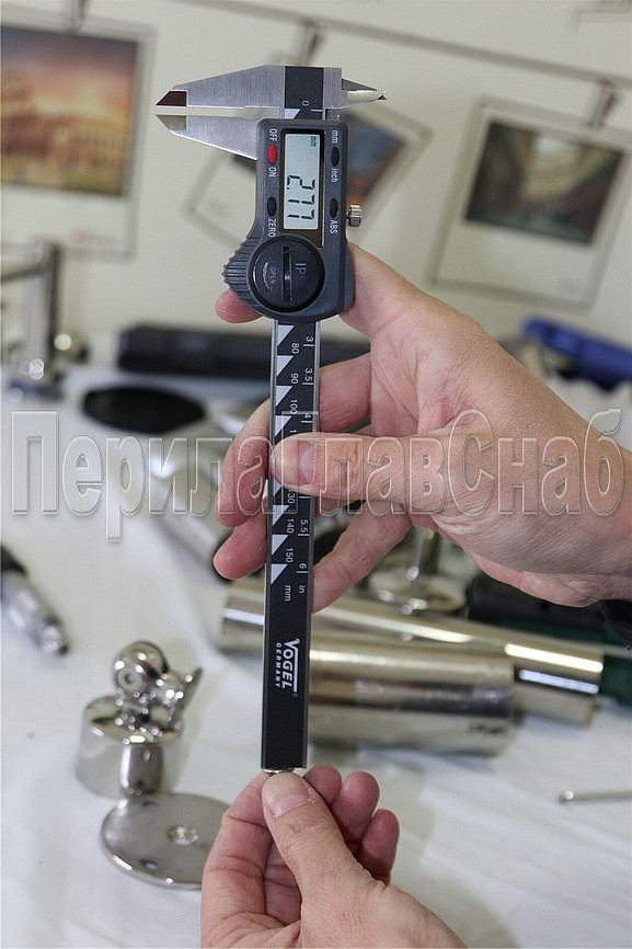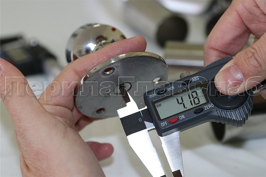 Фланец наружный по отношению к трубе поручня. Перила заправляются внутрь стального фланца, установленного на 3 самореза в стену.