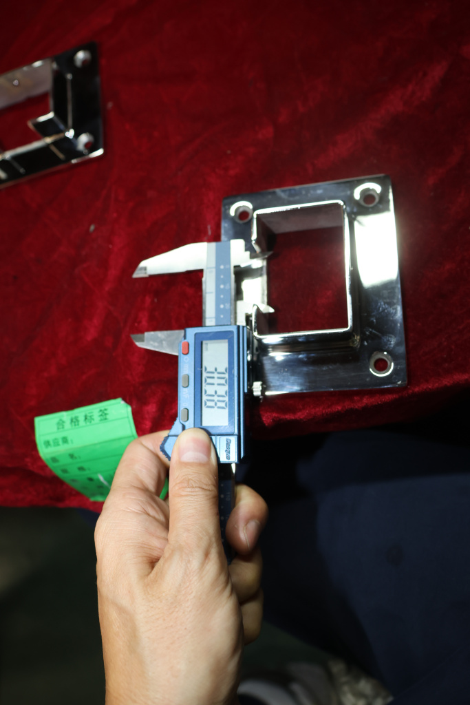 Фланец с четырьмя отверстиями для трубы с пазом 40х60 мм. Деталь полированная, литая. Марка стали - AISI 304