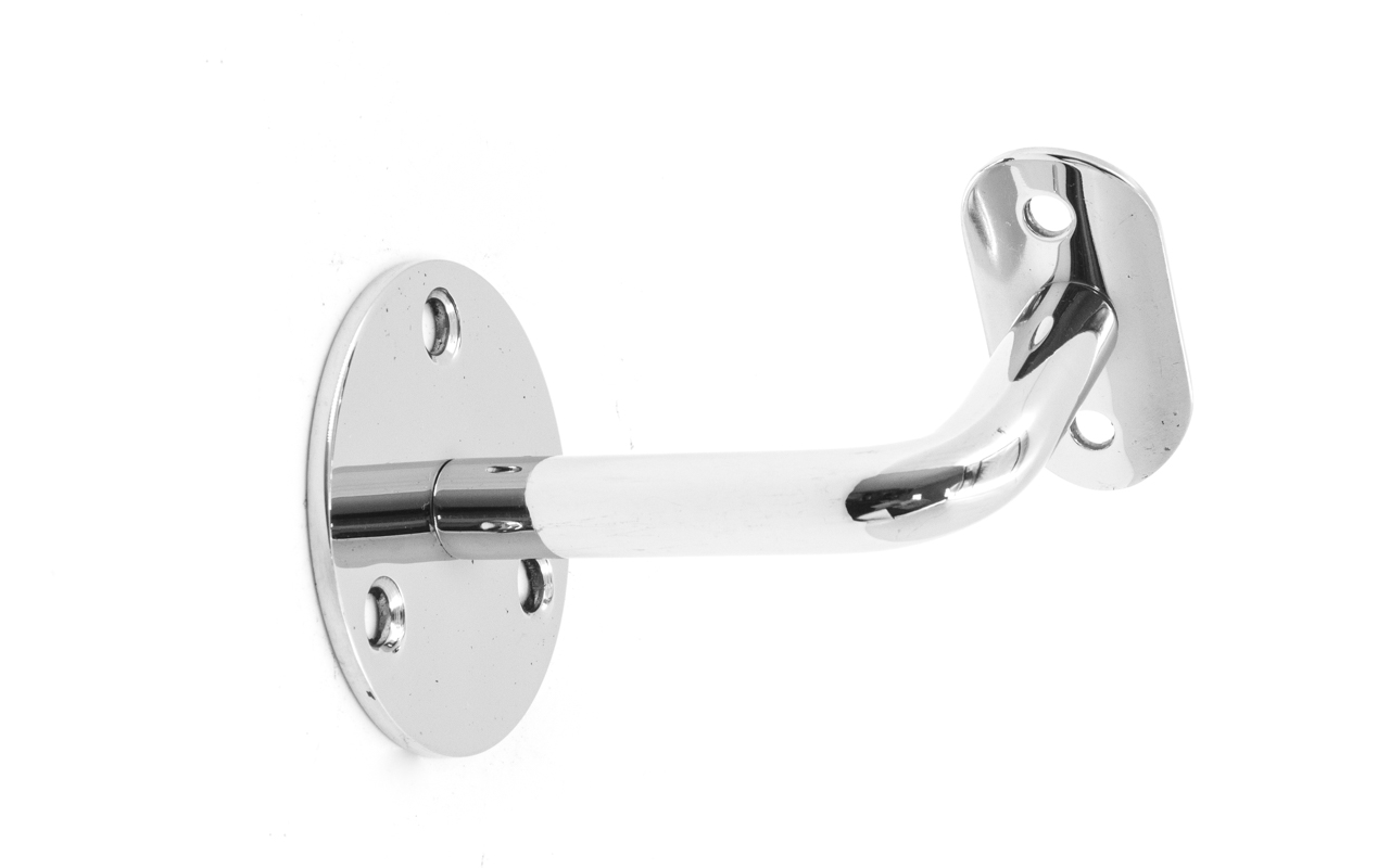 К стене стальной держатель крепится фланцем на три самореза Ø3 мм. Поручень крепется на саморезы или на сварку.