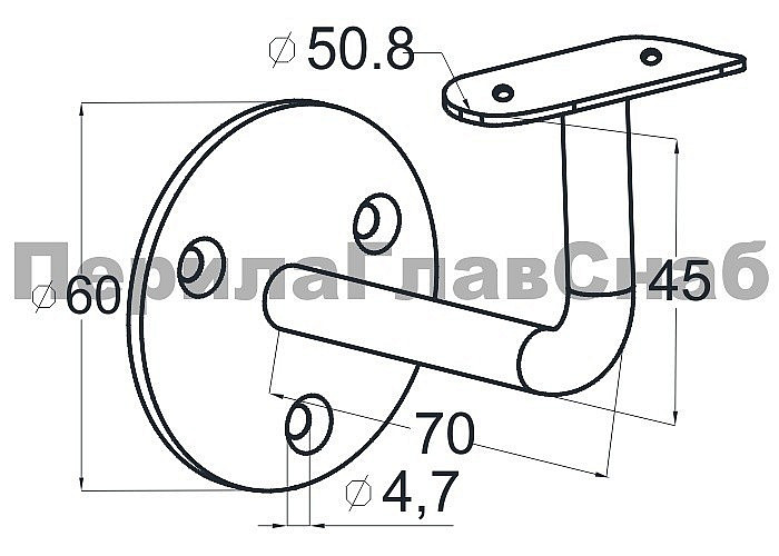 Кронштейн для перил к стене без ложемента, Ø60х3 мм k009-4
