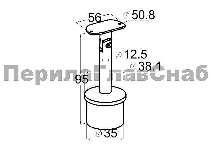 Вставляется в стойку диаметром Ø38.1 мм под поручень Ø50.8 мм. Два метода крепления: 1. на сварку. 2. на двухкомпонентный клей (Ф-1105, Ф-1106, Ф-1107)