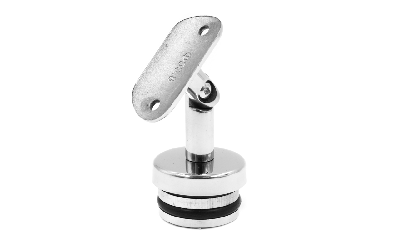 Отличный наконечник под самосбор! Устанавливается на стойку O42,4 мм путем затягивания распирающих изнутри трубу резиновых прокладок, без помощи сварки и клея. Ложемент на данной модели регулируемый под поручень Ø50.8 мм. Особенность фитинга в том, что он одевается на трубу сверху, тем самым закрывая все неровности распиловки.